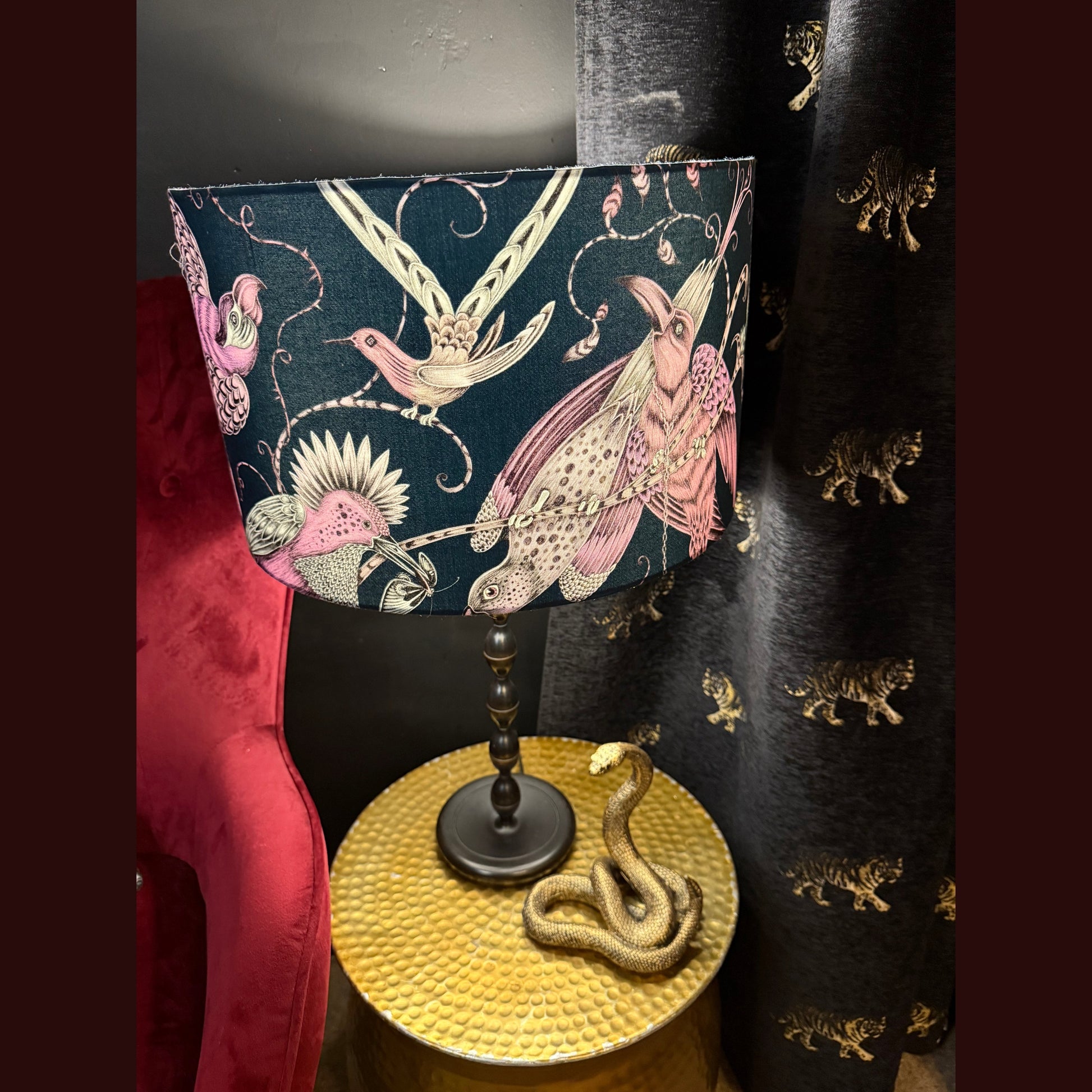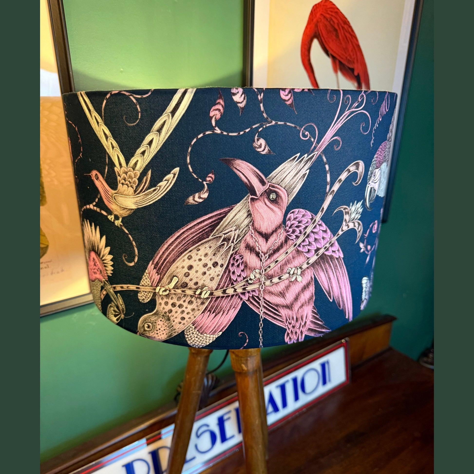 The Audubon lampshade, made from Emma J Shipley cotton fabric.