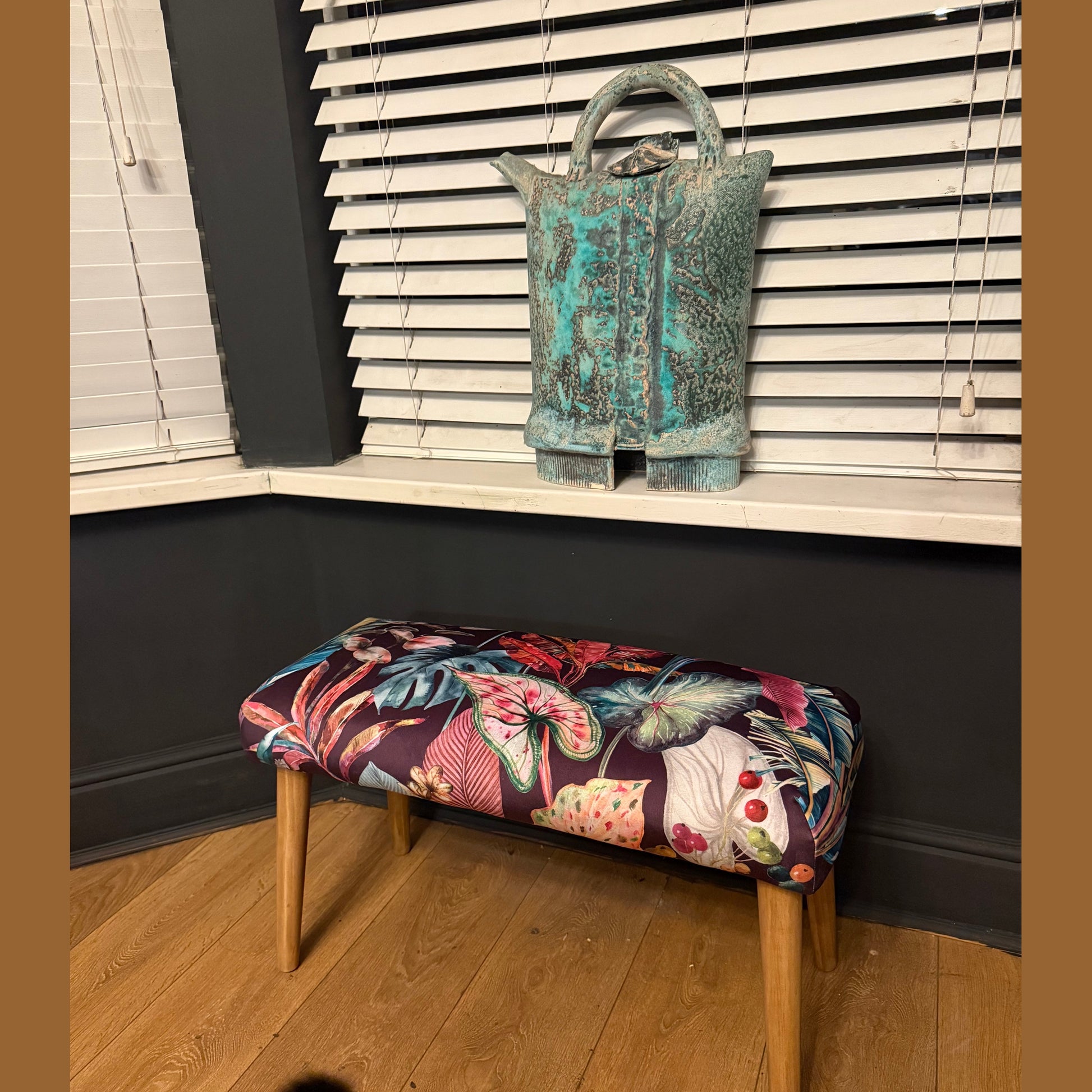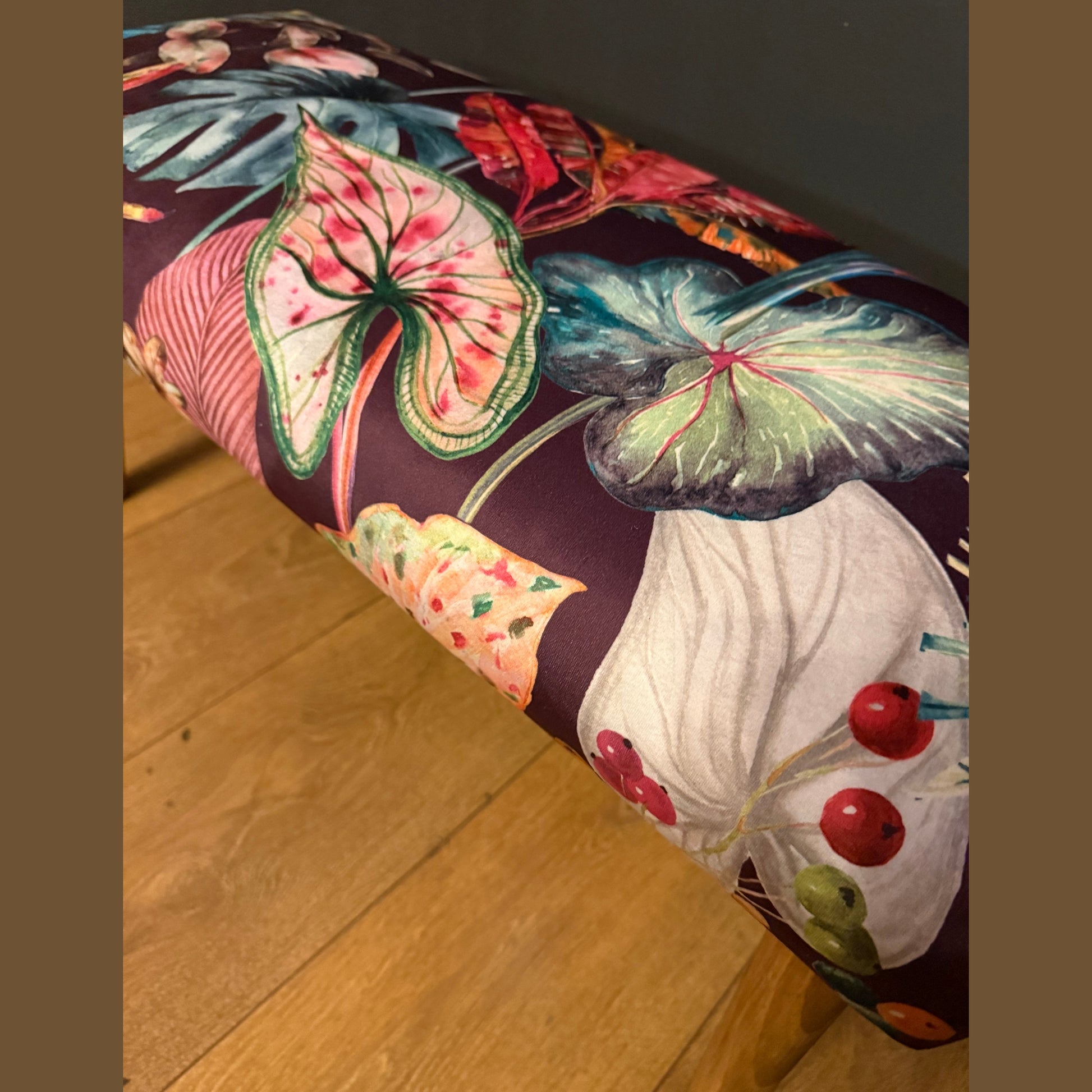 The acid leaf botanical footstool packs a punch with an explosion of colour, if you’re looking for a colour pop then this dramatic print is for you. This amazing printed velvet has so many colours in it.