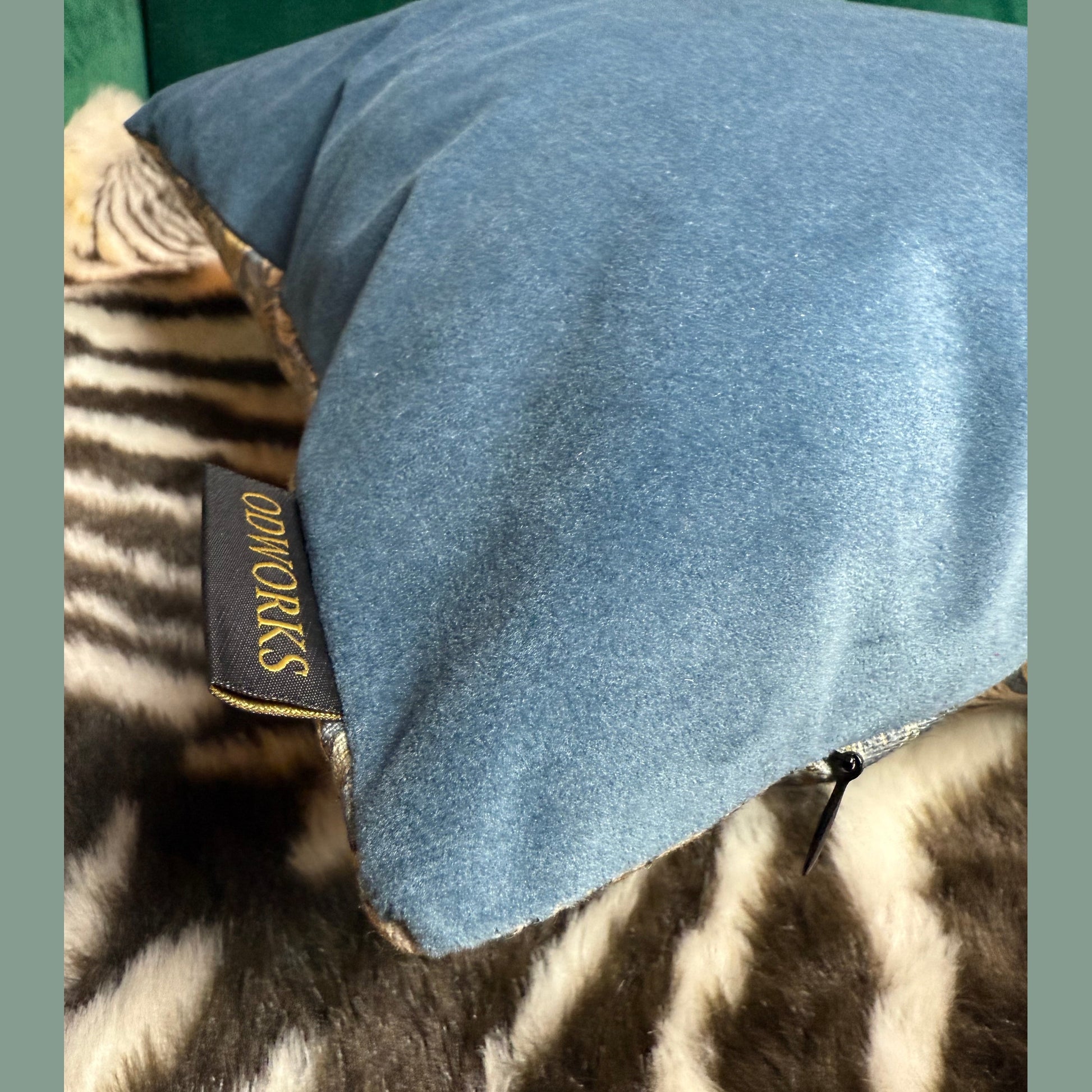 This cushion is finished with an invisible zip and a contrasting velvet backing, print placement may vary cushion to cushion.
